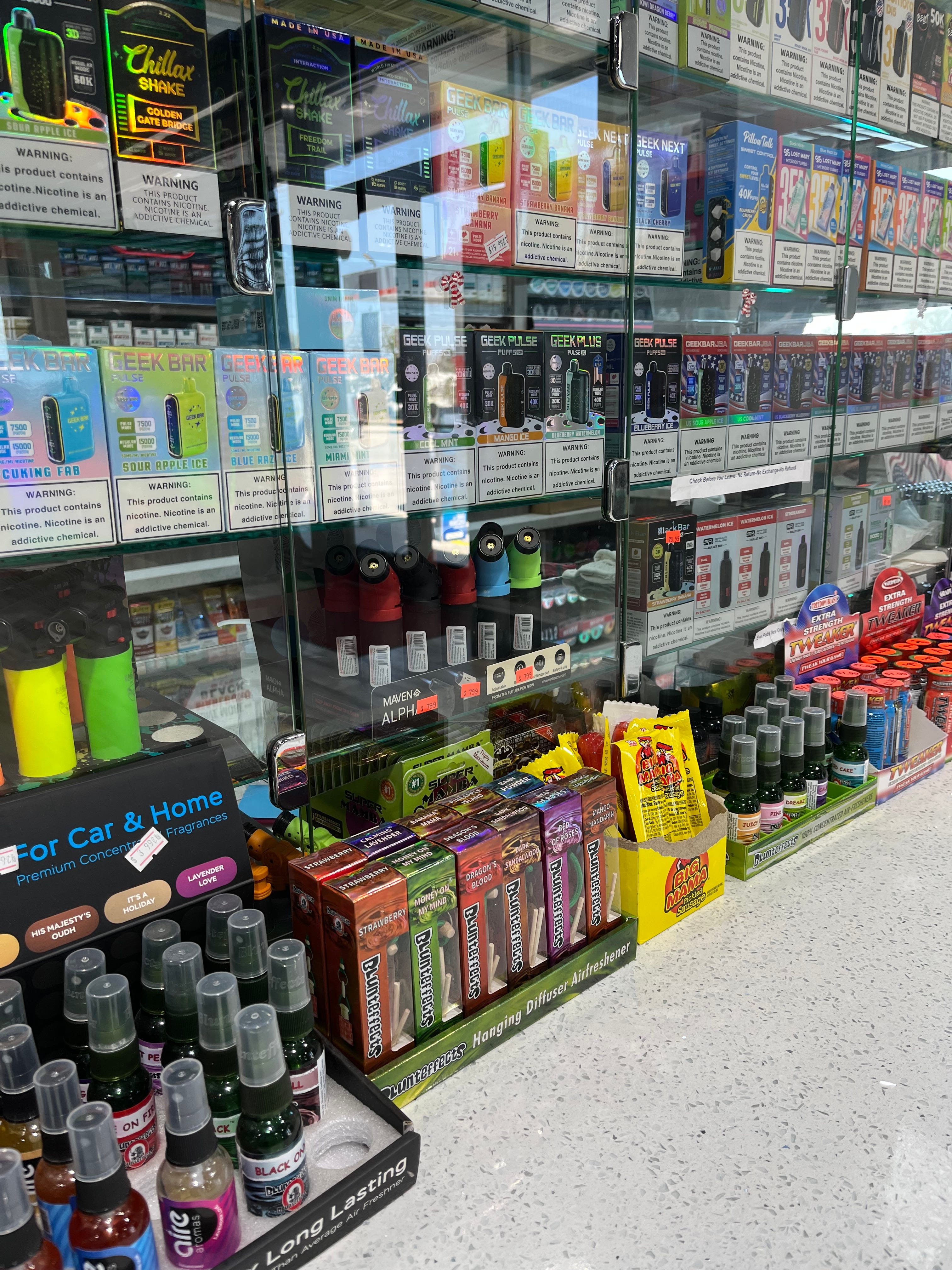 We ended up exiting those investments for a smaller profit than expected a couple of years ago, when the thesis proved false, in that the heretofore effective regulatory regime of nicotine products failed against the swarm of Chinese-manufactured vapes and Indian-owned convenience stores and smoke shops. These immigrants do not quietly comply with laws, but rather demand a level of enforcement resources our country lacks. Here’s a typical display from a recent road trip: